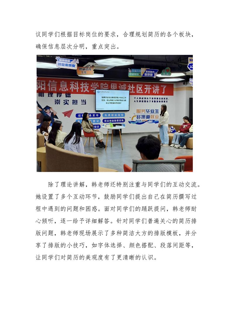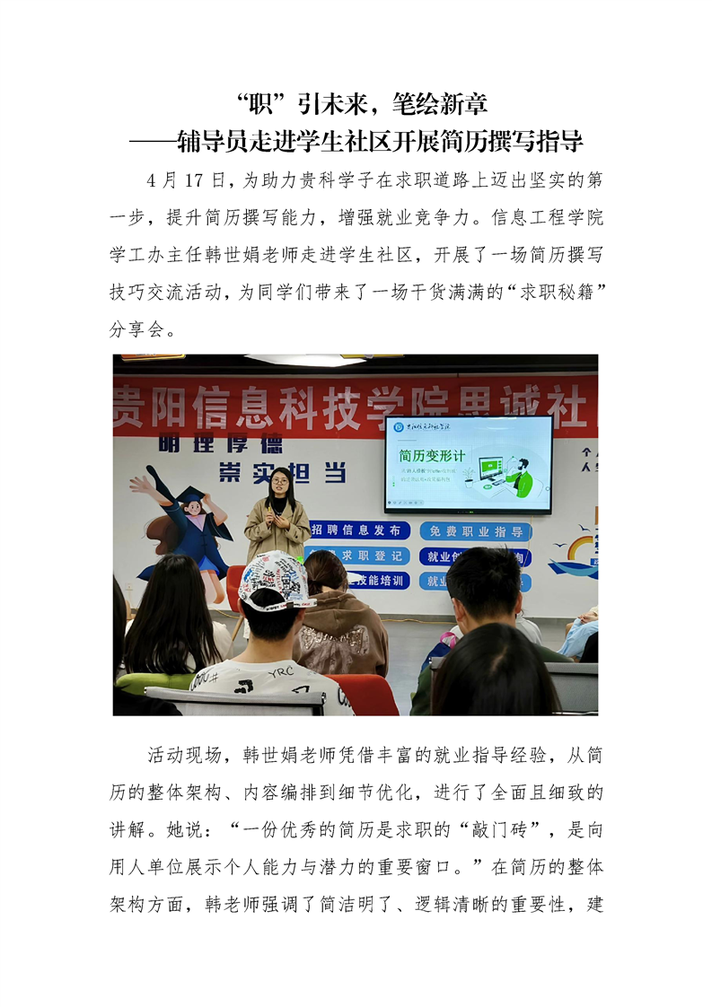 “职”引未来,笔绘新章 ——辅导员走进学生社区开展简历撰写指导