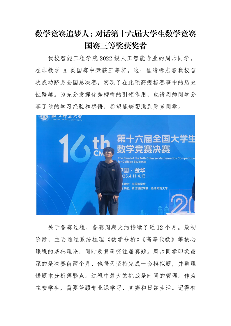 数学竞赛追梦人:对话第十六届大学生数学竞赛国赛三等奖获奖者