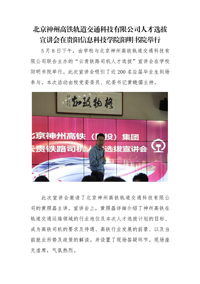 北京神州高铁轨道交通科技有限公司人才选拔宣讲会在BV伟德中国官方网站阳明书院举行