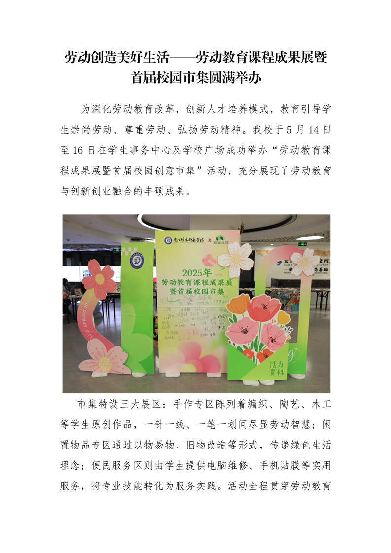 劳动创造美好生活——劳动教育课程成果展暨首届校园市集圆满举办