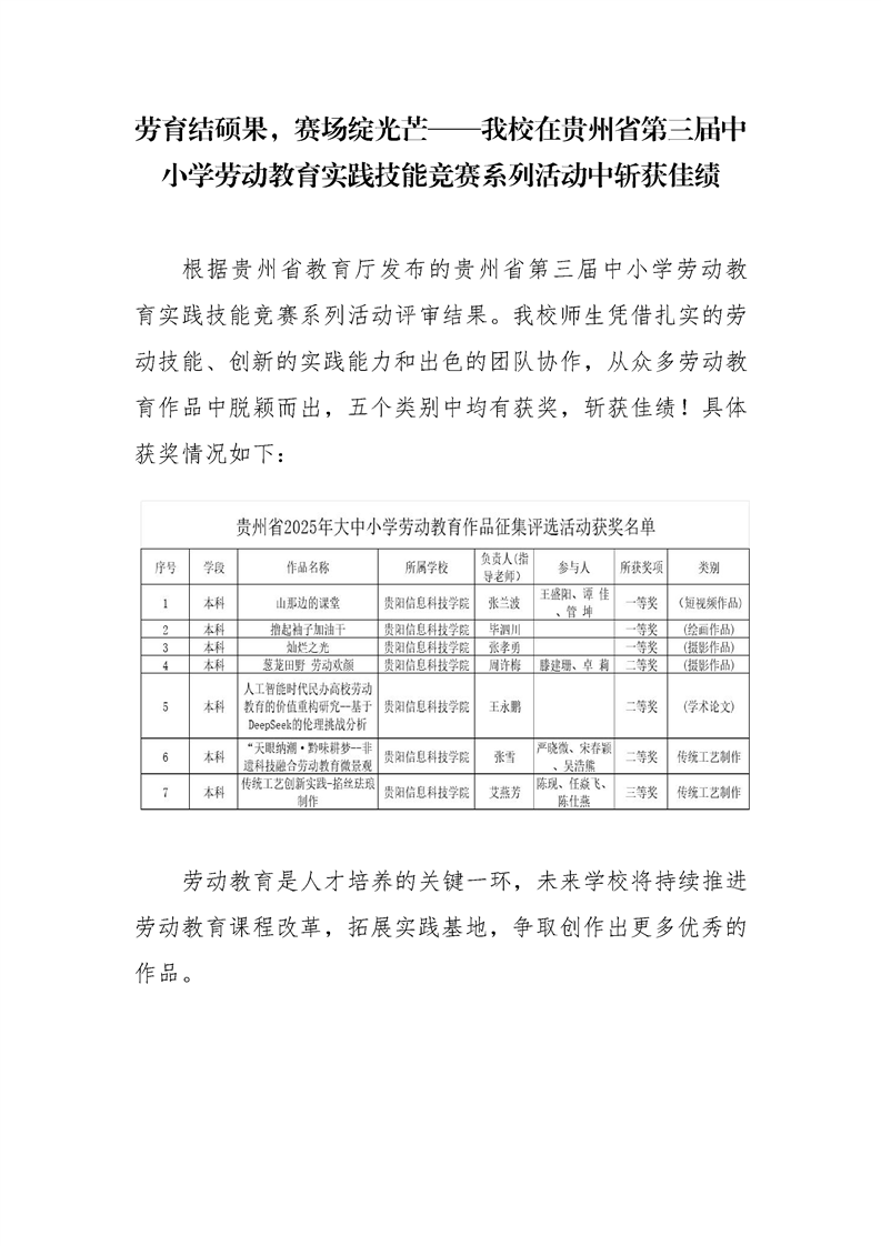 劳育结硕果,赛场绽光芒——伟德官网在贵州省第三届中小学劳动教育实践技能竞赛系列活动中斩获佳绩