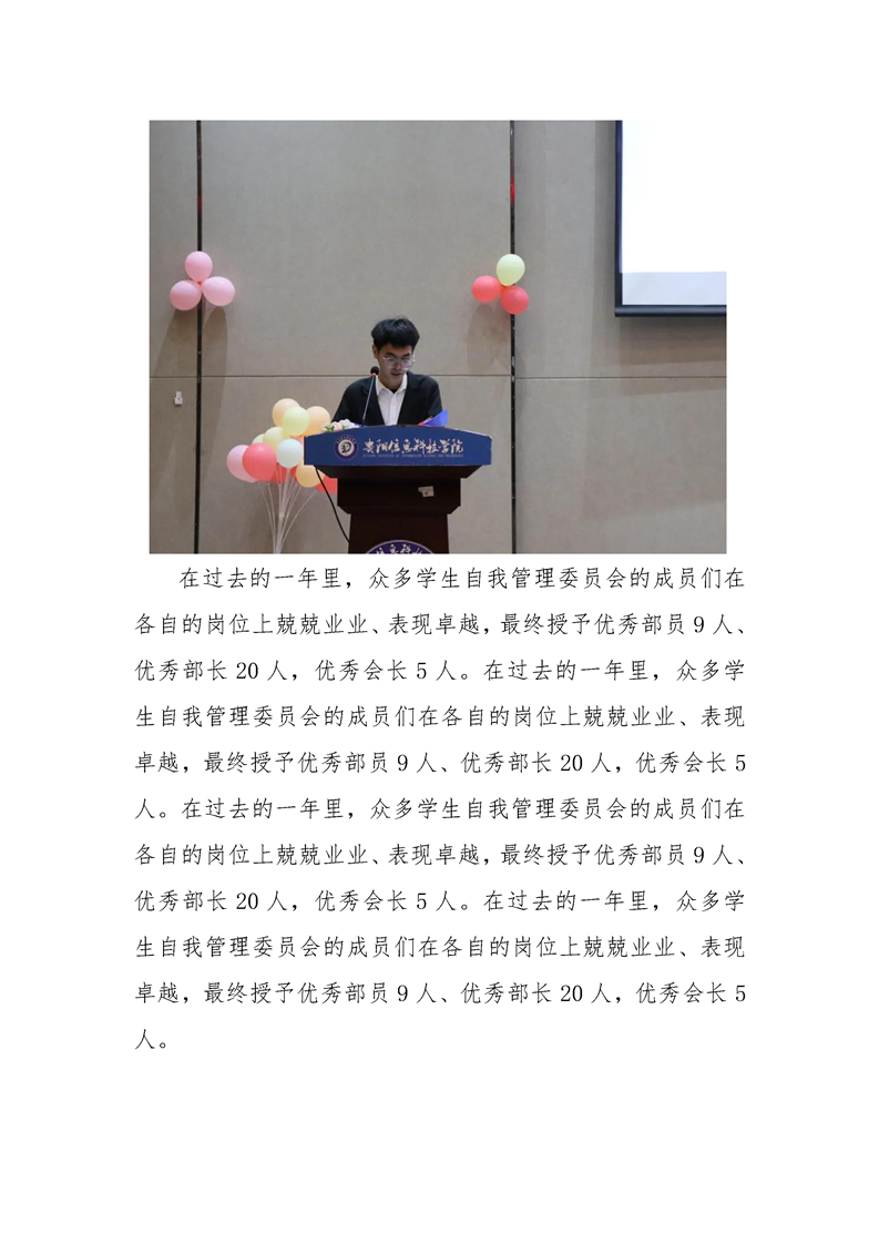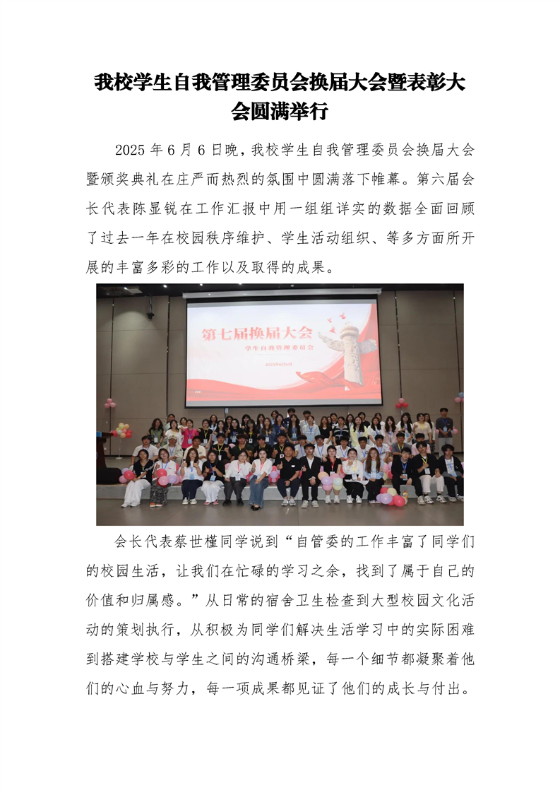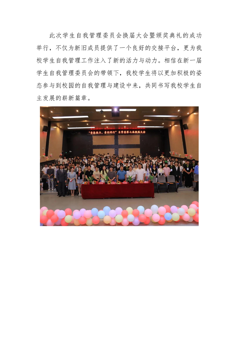 伟德官网学生自我管理委员会换届大会暨表彰大会圆满举行