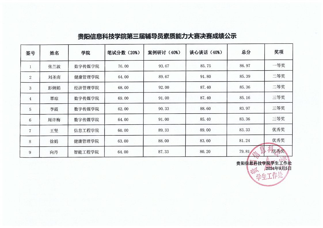 BV伟德中国官方网站第四届辅导员素质能力大赛总成绩公示