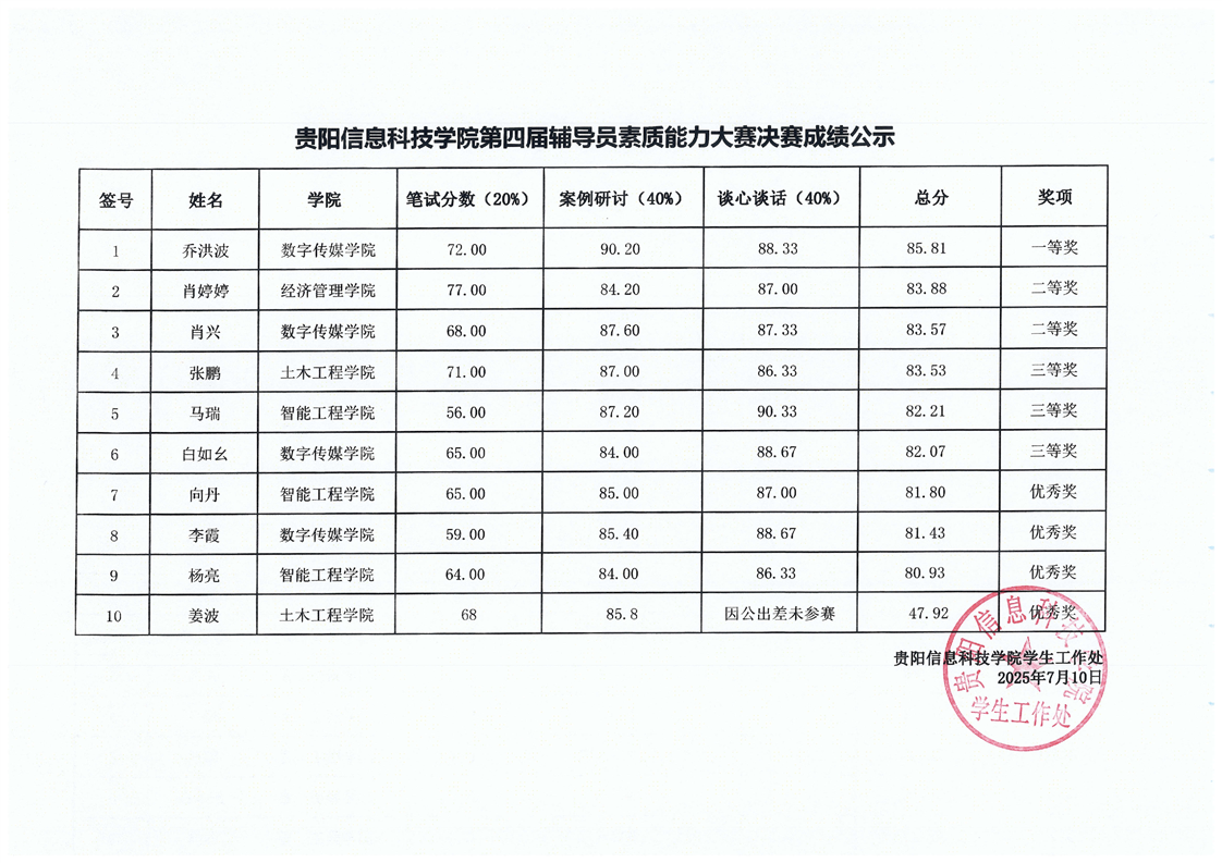 BV伟德中国官方网站第四届辅导员素质能力大赛总成绩公示