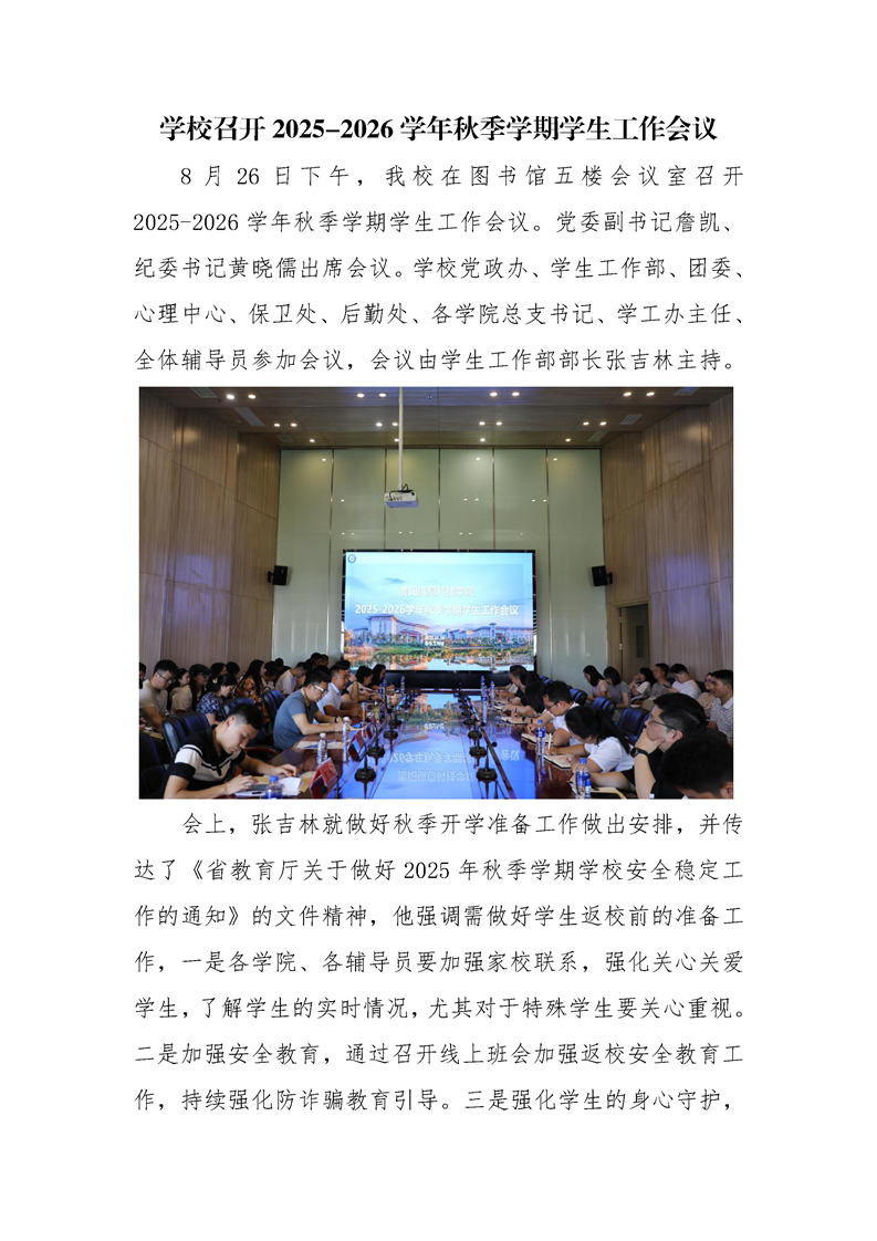 学校召开2025-2026学年秋季学期学生工作会议