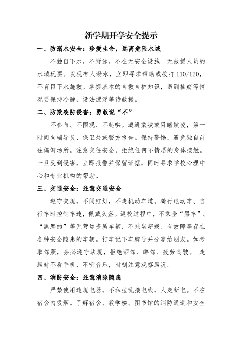 新学期开学安全提示