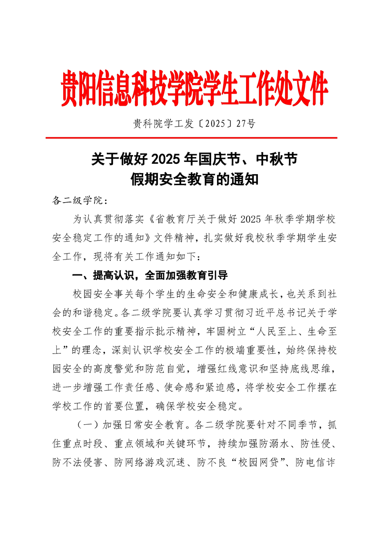 关于做好2025年国庆节、中秋节 假期安全教育的通知