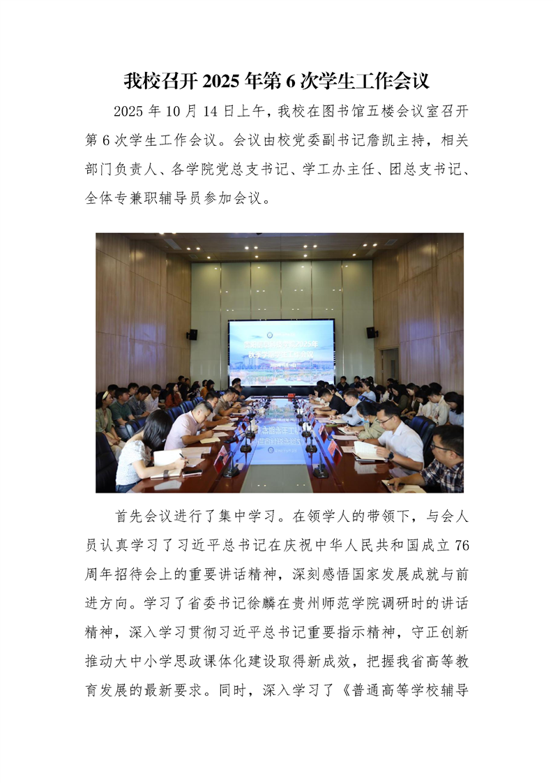 伟德官网召开2025年第6次学生工作会议