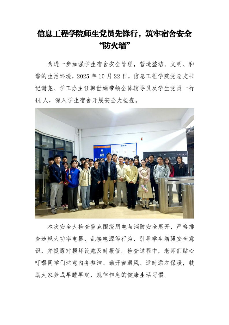 信息工程学院师生党员先锋行,筑牢宿舍安全“防火墙”
