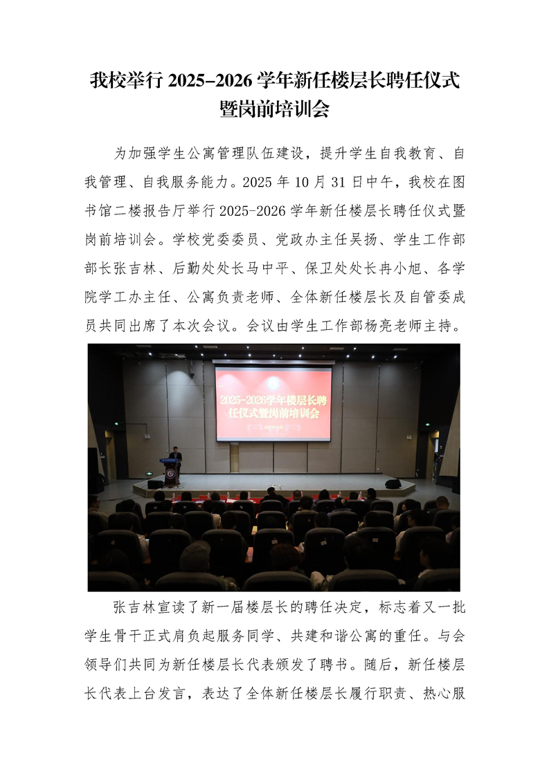 伟德官网举行2025-2026学年新任楼层长聘任仪式暨岗前培训会