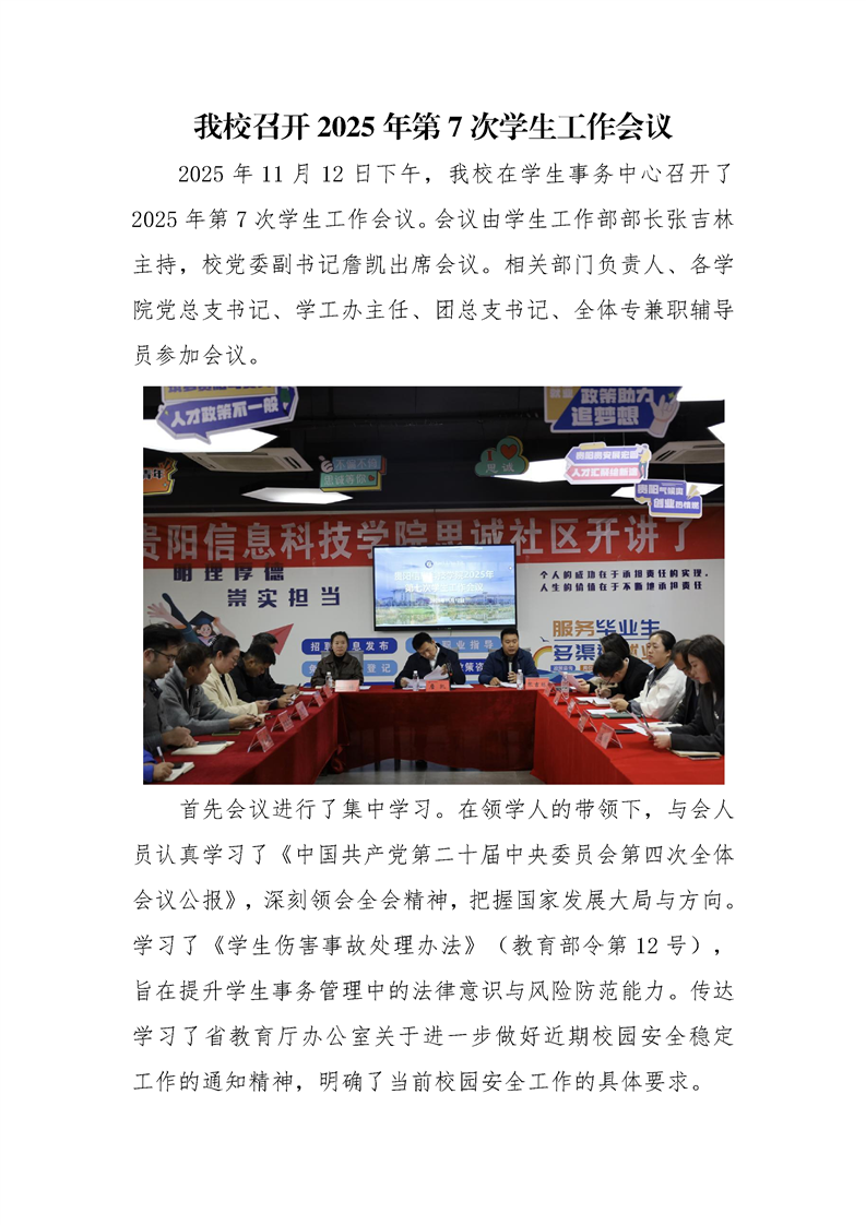 伟德官网召开2025年第7次学生工作会议