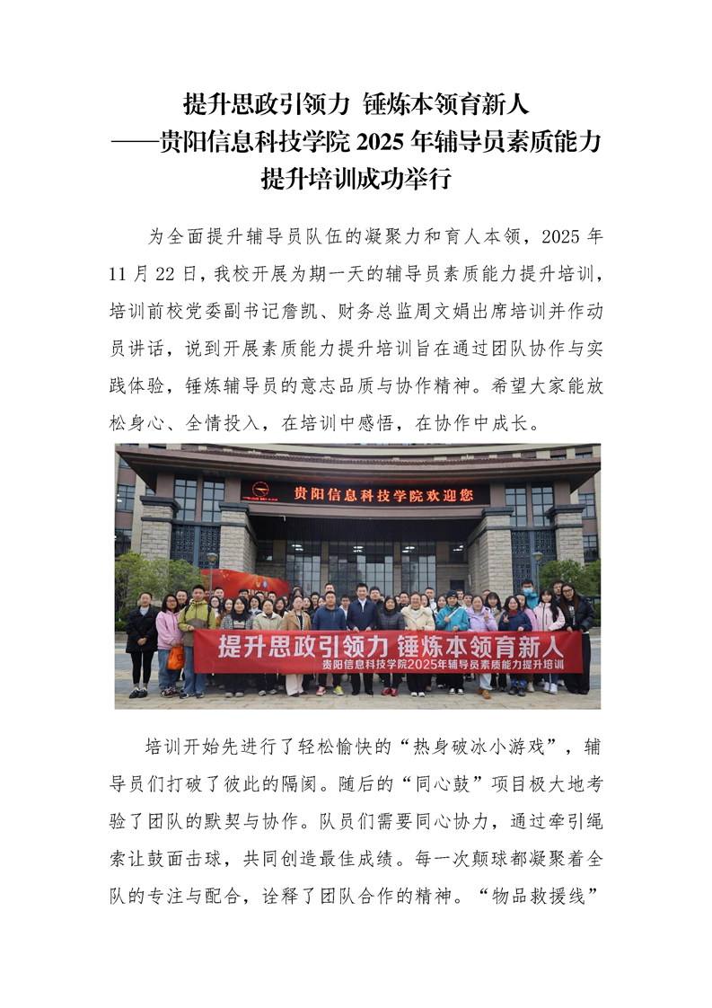 提升思政引领力 锤炼本领育新人——BV伟德中国官方网站2025年辅导员素质能力提升培训成功举行