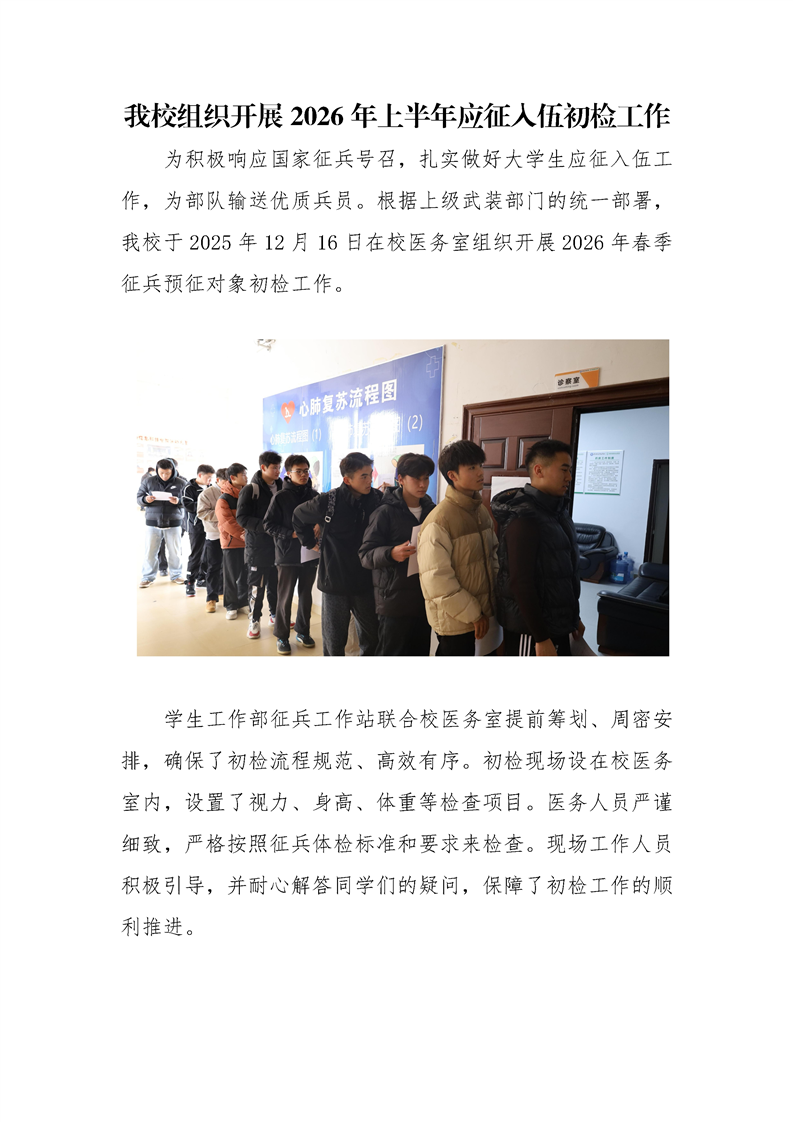 伟德官网组织开展2026年上半年应征入伍初检工作