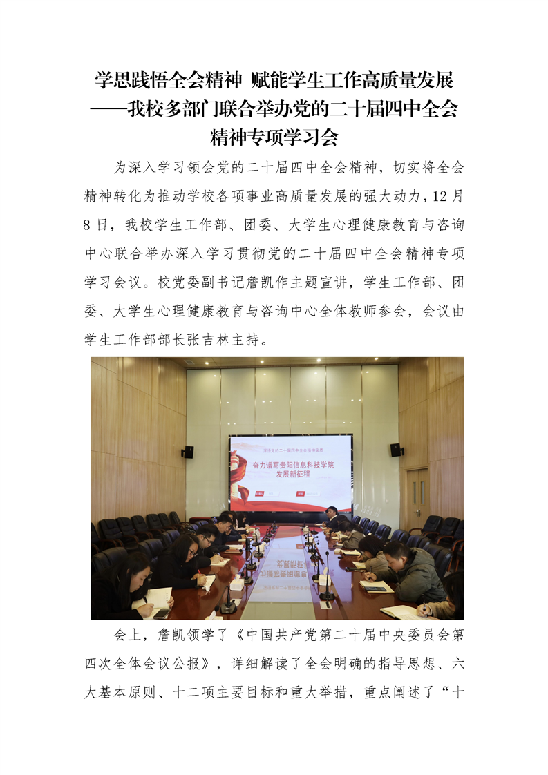 学思践悟全会精神 赋能学生工作高质量发展 ——伟德官网多部门联合举办党的二十届四中全会 精神专项学习会