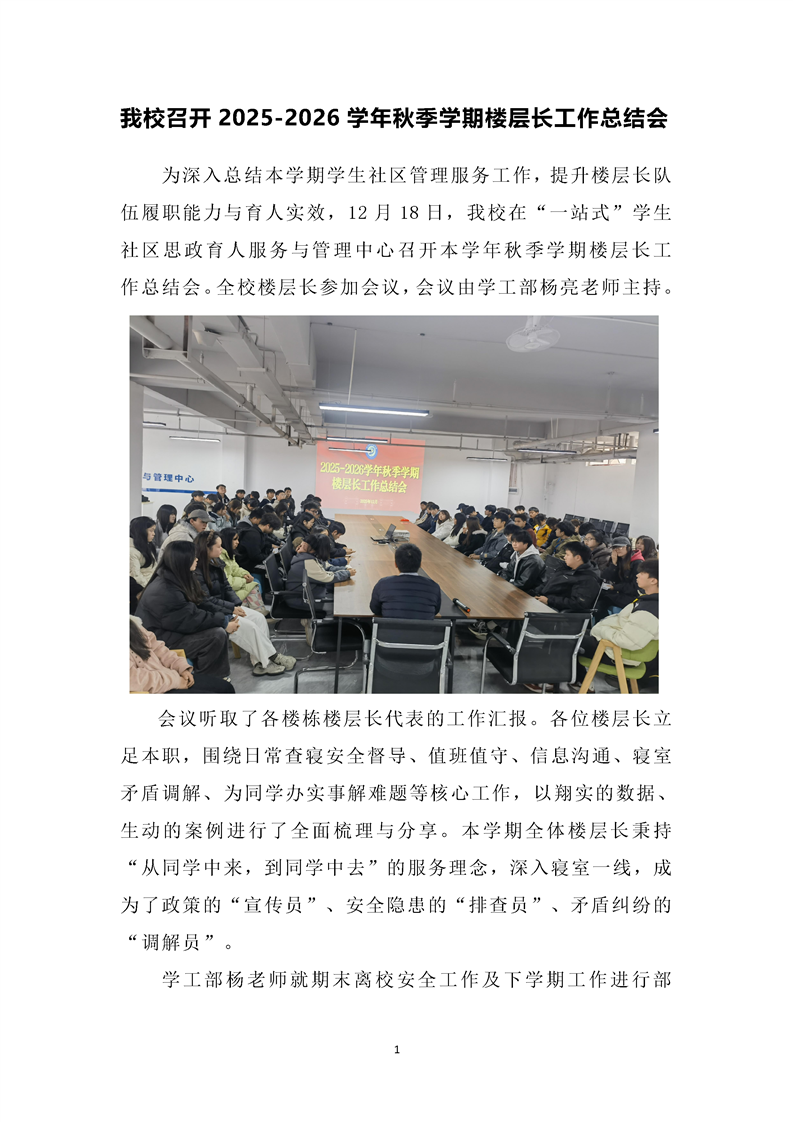 伟德官网召开2025-2026学年秋季学期楼层长工作总结会