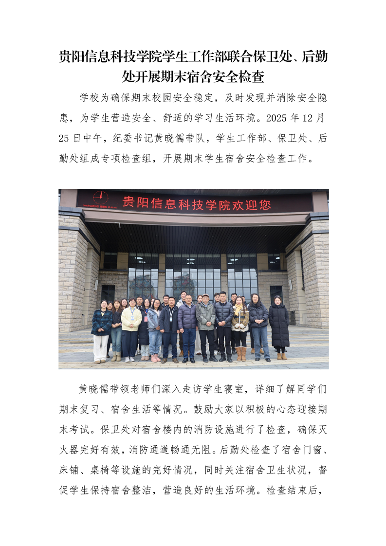 BV伟德中国官方网站学生工作部联合保卫处、后勤处开展期末宿舍安全检查