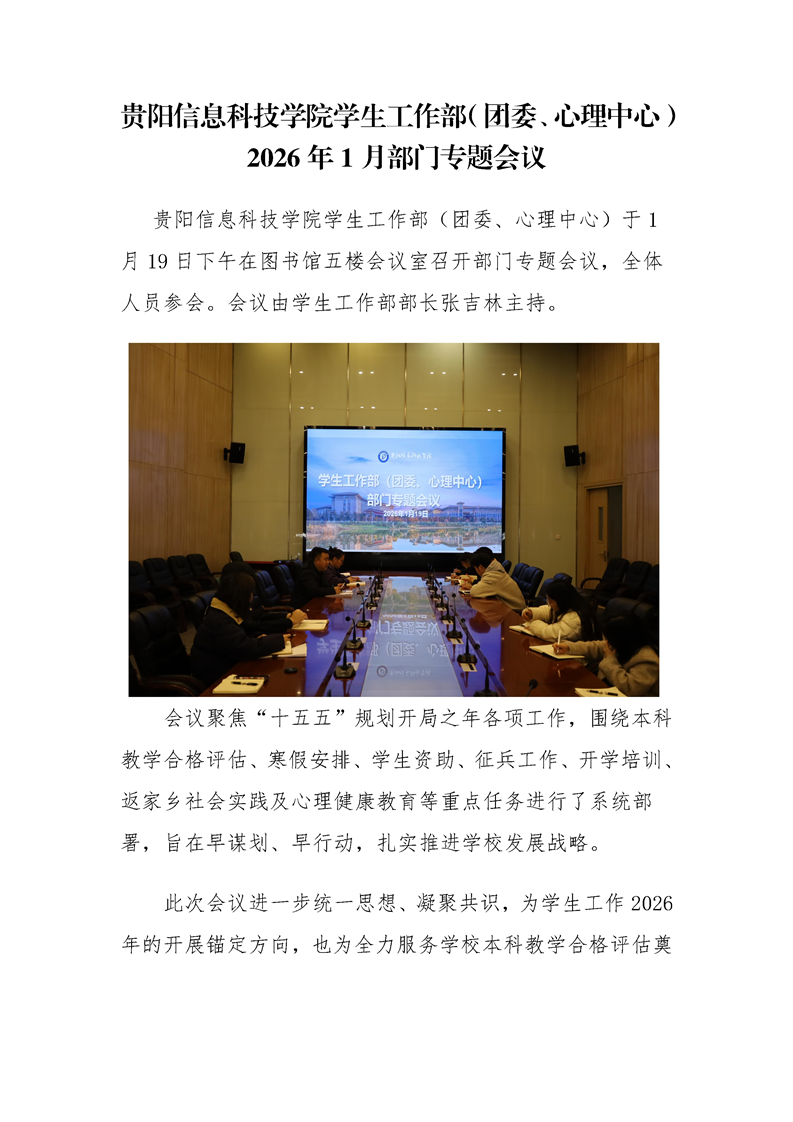 学生工作部召开2026年1月部门专题会议