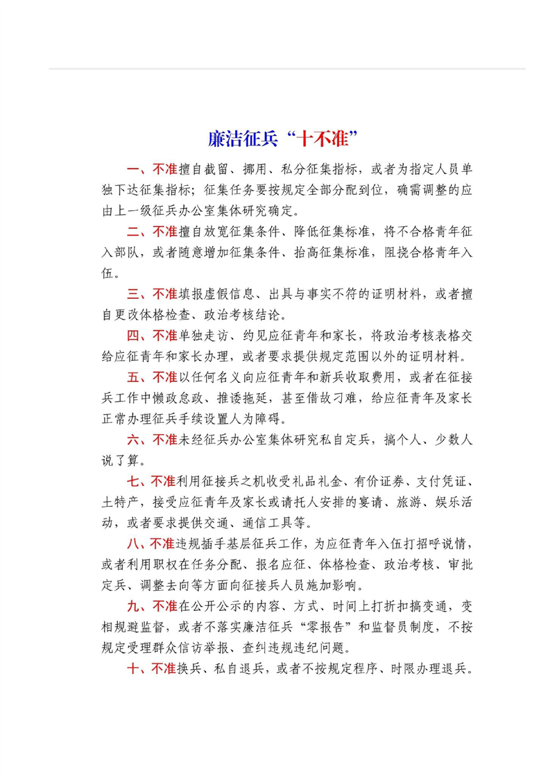 廉洁征兵“十不准”