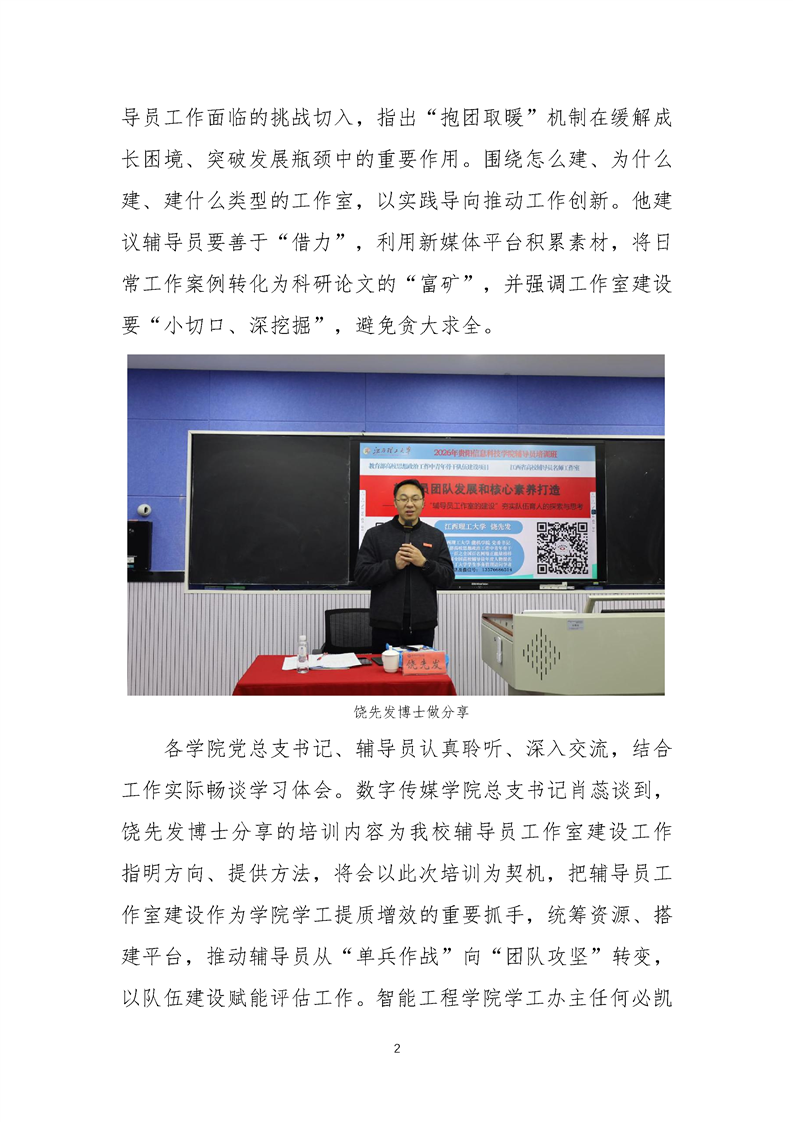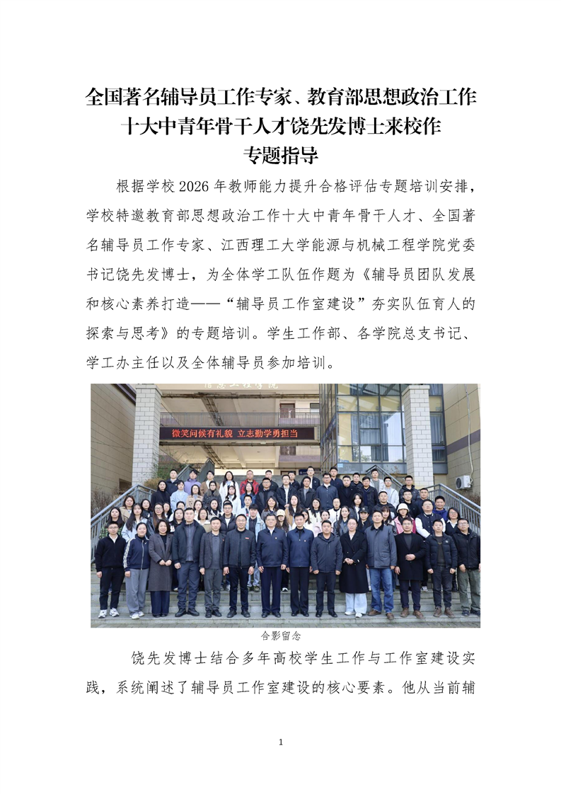 全国著名辅导员工作专家、教育部思想政治工作十大中青年骨干人才饶先发博士来校作专题指导