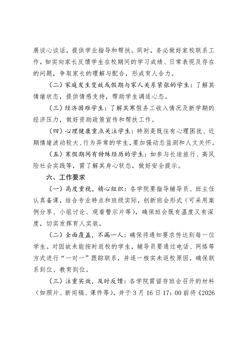 关于做好2026年春季学生思想政治教育及 安全管理工作的通知