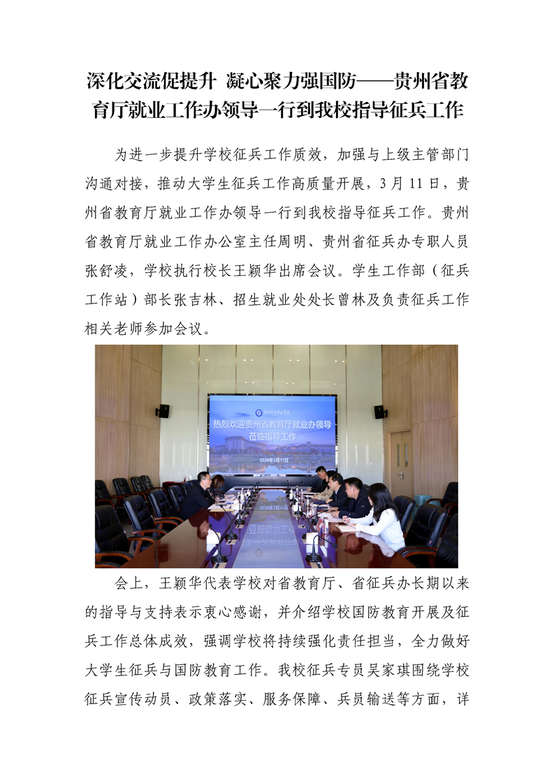 深化交流促提升 凝心聚力强国防——贵州省教育厅就业工作办领导一行到伟德官网指导征兵工作