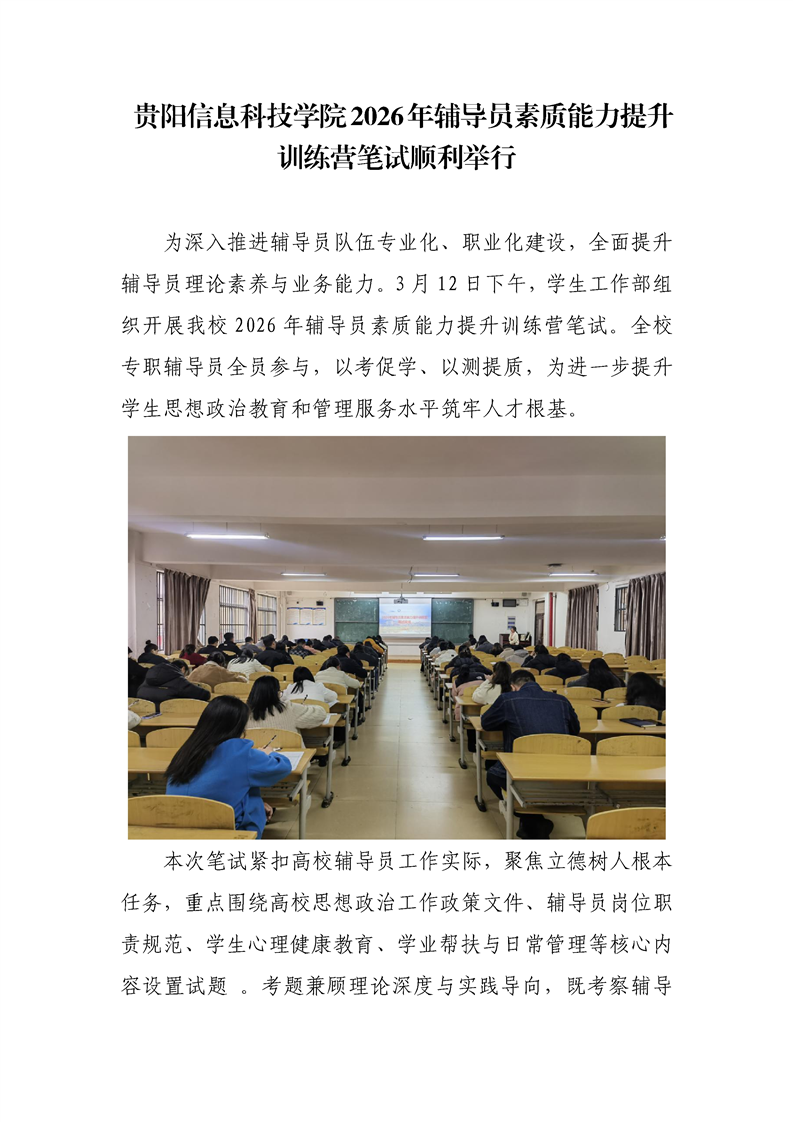 BV伟德中国官方网站2026年辅导员素质能力提升训练营笔试顺利举行