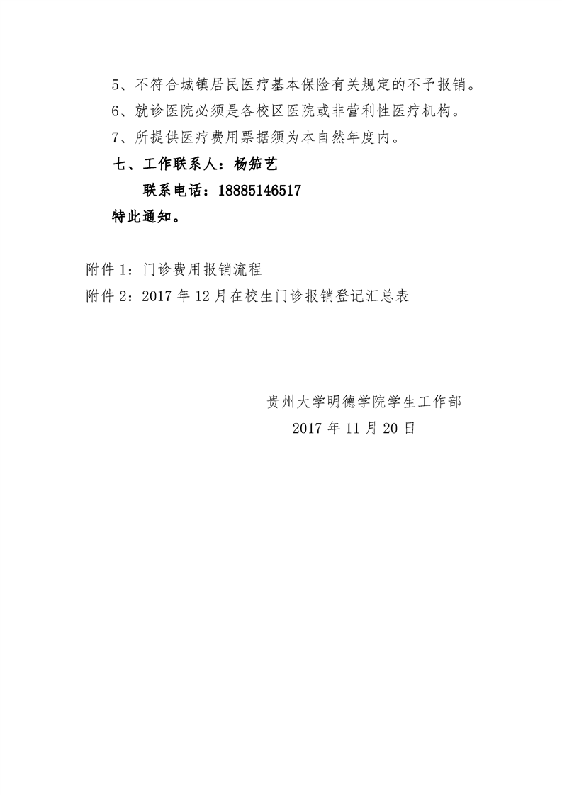 贵州大学明德学院2017年12月在校生门诊费用报销汇总表.xls