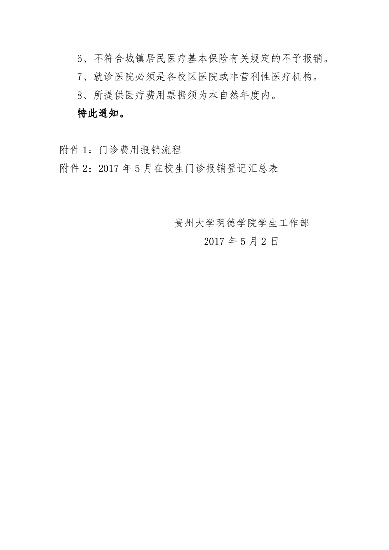 关于做好2016-2017学年第二学期学生 门诊医疗报销工作的通知