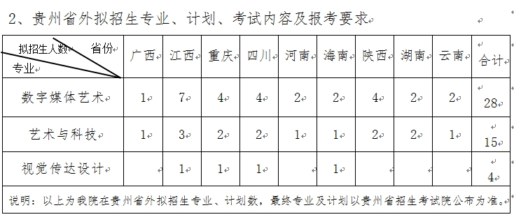 1、贵州省内拟招生专业、计划、考试内容及报考要求 |